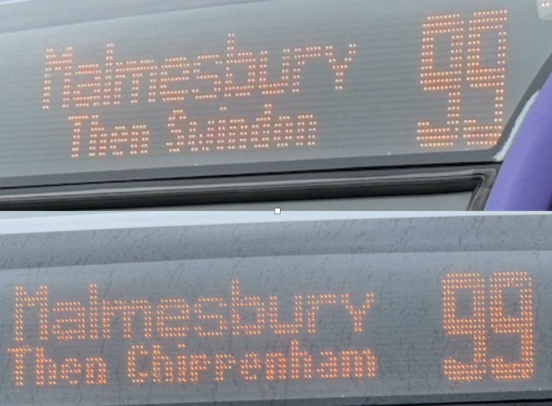 This route 99 is one of the longest of the 25 to be featured at 39 miles with an end to end journey time of an hour and 45 minutes. It’s effectively two separate routes – Chippenham to Malmesbury and Malmesbury to Swindon but by joining the two together ‘cross Malmesbury’ journeys are easily marketed and possible.